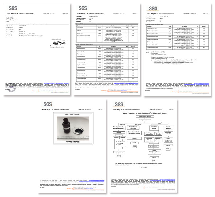 SGS 테스트를 받은 제품은 중금속 등의 유해 물질이 검출되지 않은 안전한 제품입니다.